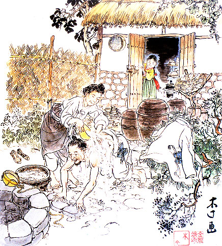 韓国民を白衣民族という。だがこの白衣は一旦垢で汚れると、清楚な白色だけに汚れが余計目立つ。だから昔の韓国人主婦達は、毎日を洗濯に明け暮れその苦労は大変だった。当時は家庭内に、用水施設が無いから近くの川に行って洗濯をした。