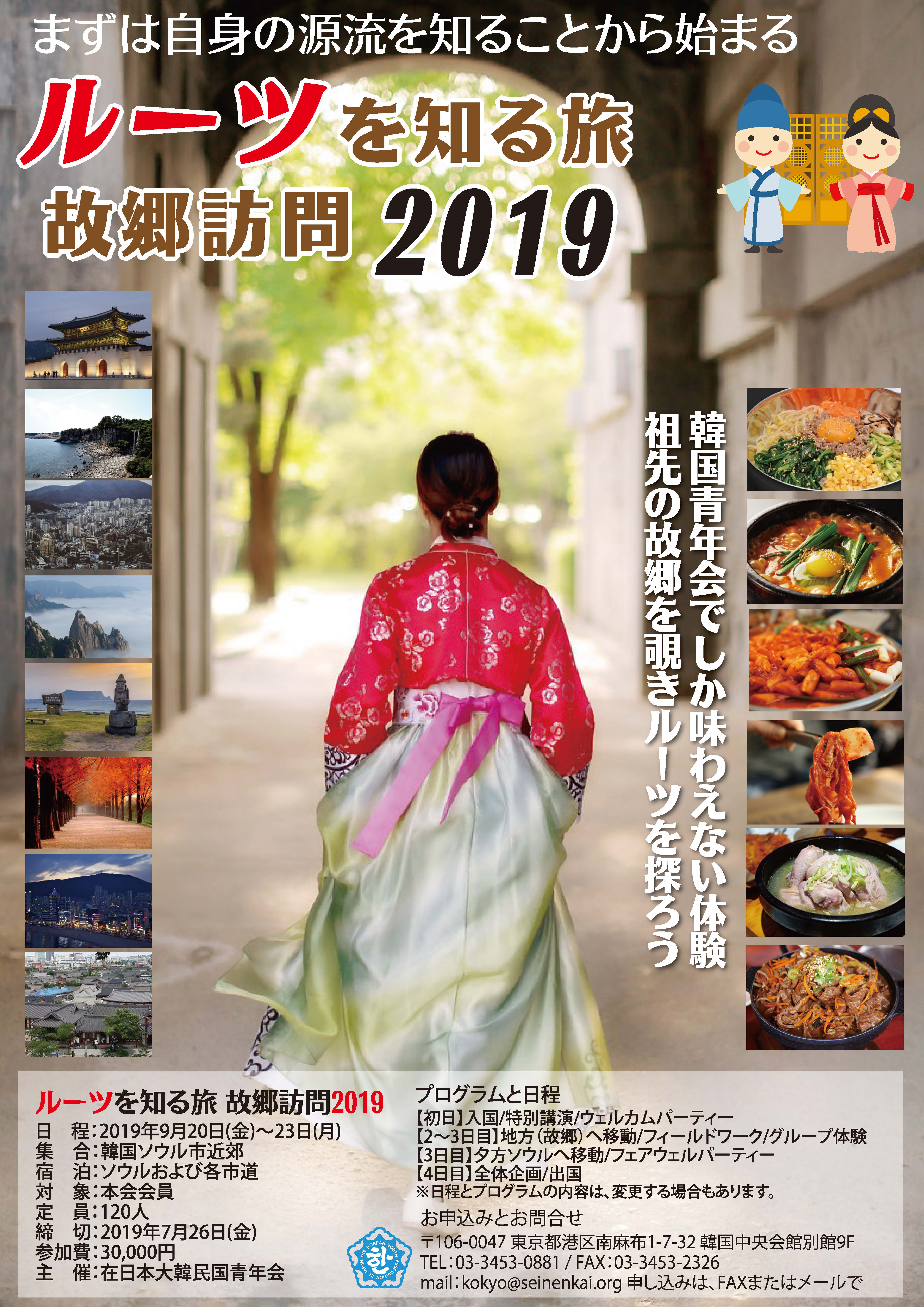 全国に在住する在日同胞青年のみなさま、アンニョンハシムニカ。この度は、「ルーツを知る旅 故郷訪問2019」に関心を持っていただき、ありがとうございます。