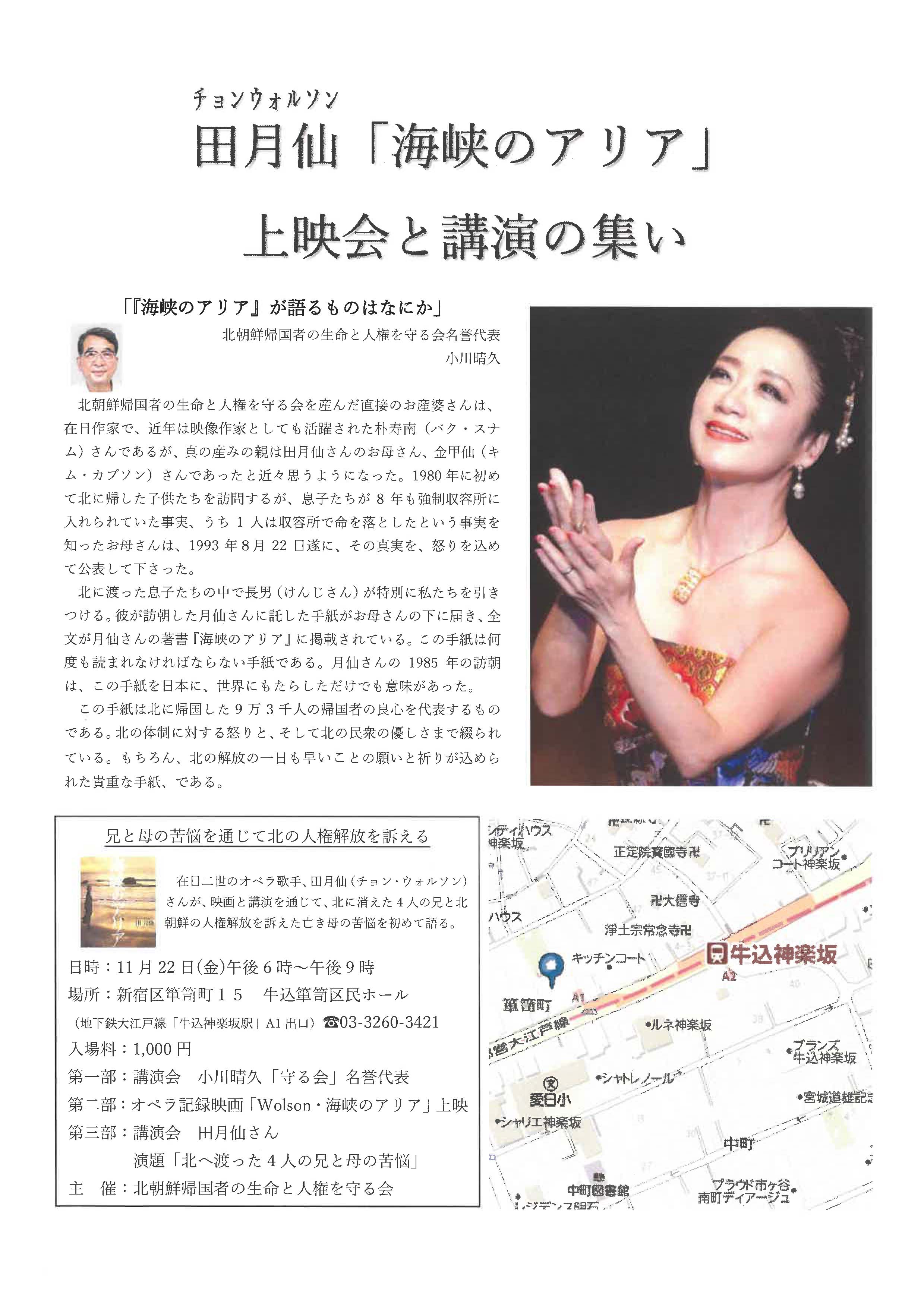 田月仙「海峡のアリア」上映会と講演のお知らせ