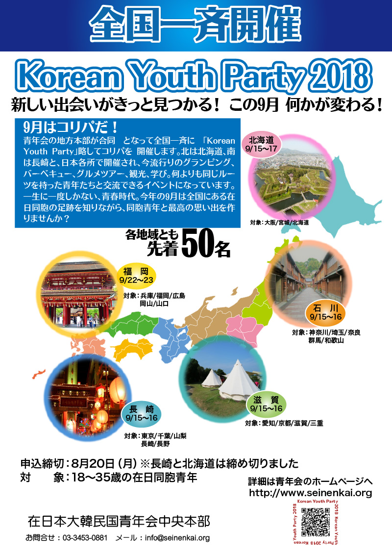 そんな中、青年会で今年開催されるのが、全国の地方本部が合同となって、5チームで開催する「Korean Youth Party」略してコリパでございます。