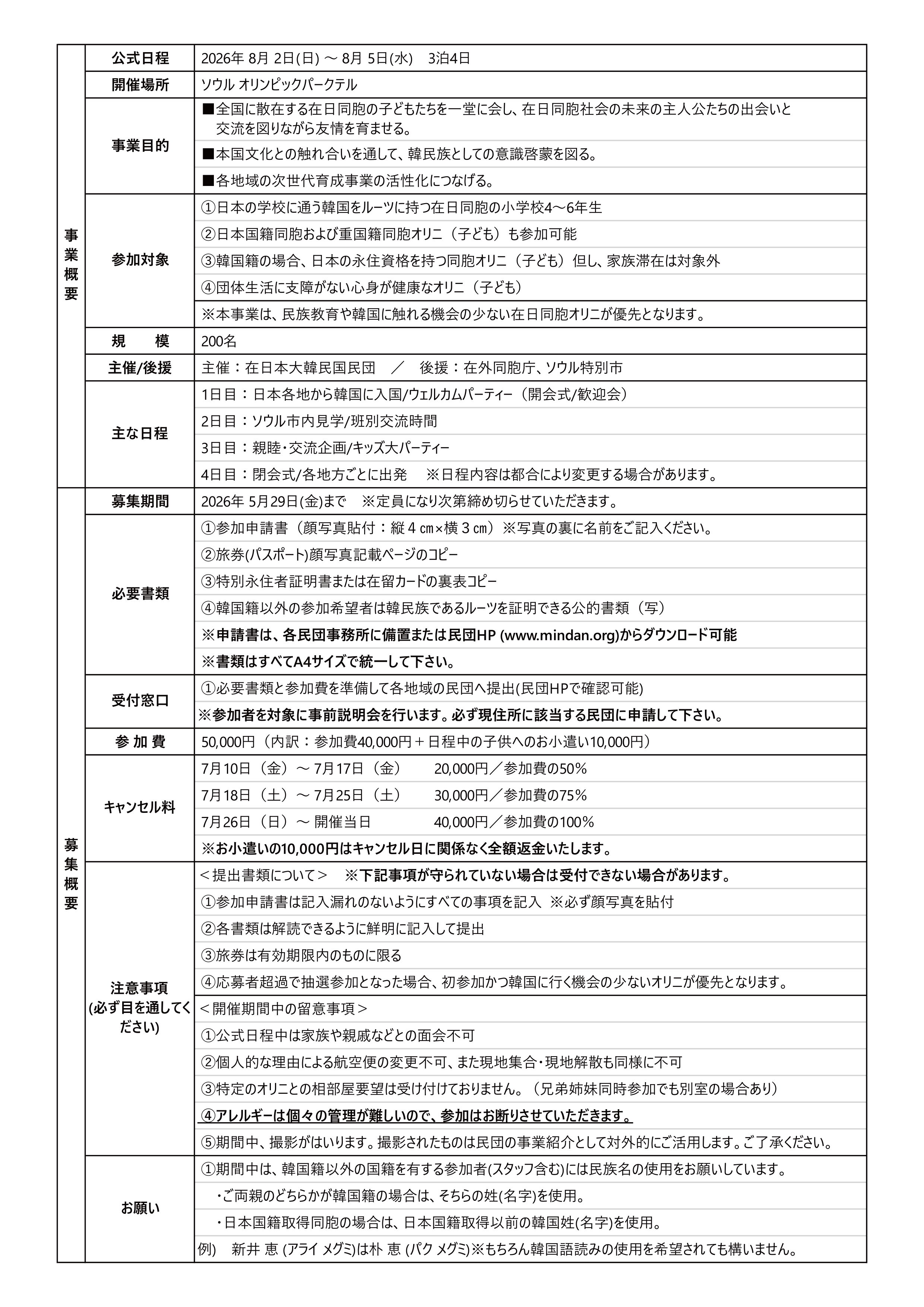 【募集】2026 在日同胞オリニジャンボリー参加申請案内