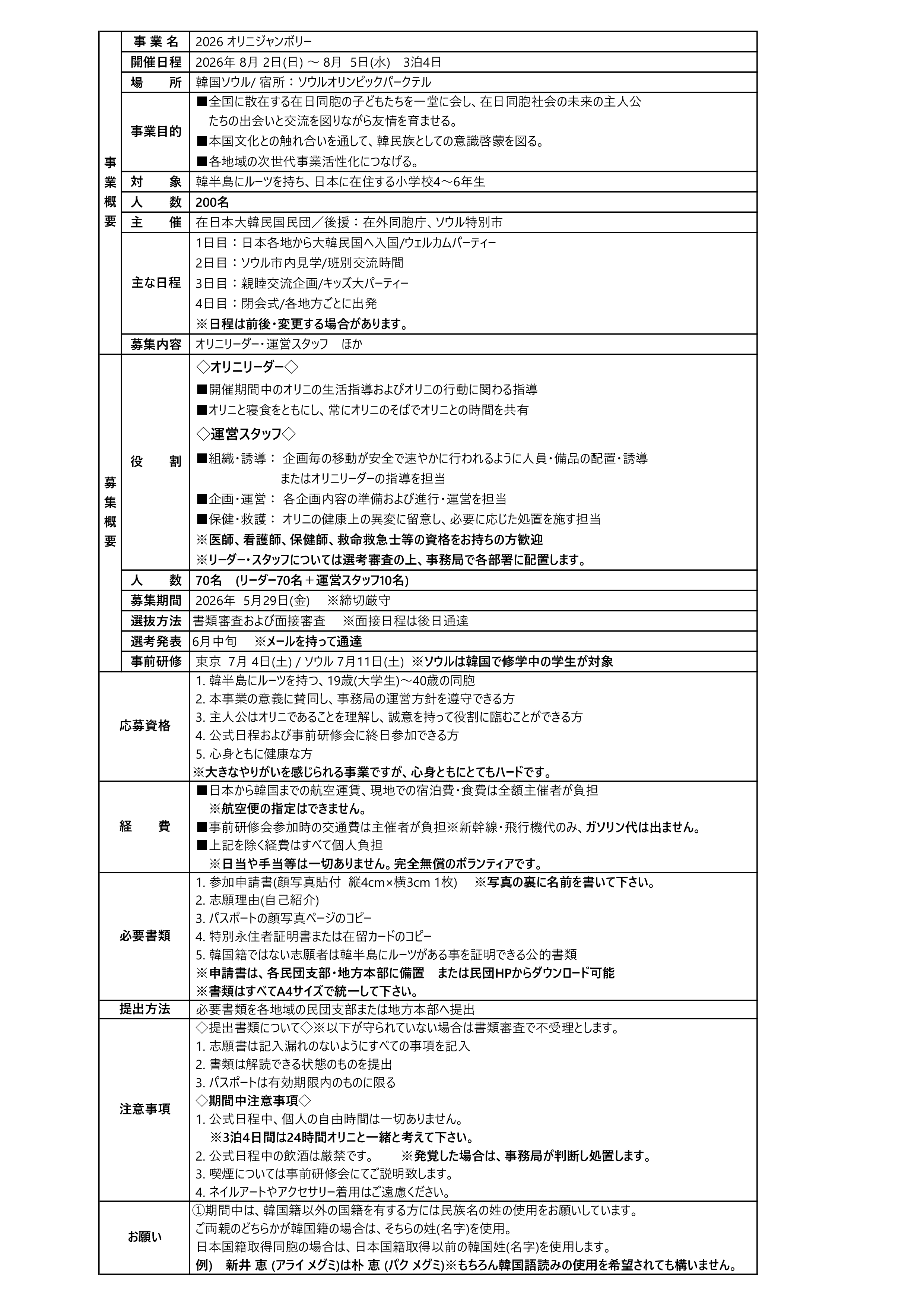 2025 在日同胞オリニジャンボリー 参加者&ボランティア募集