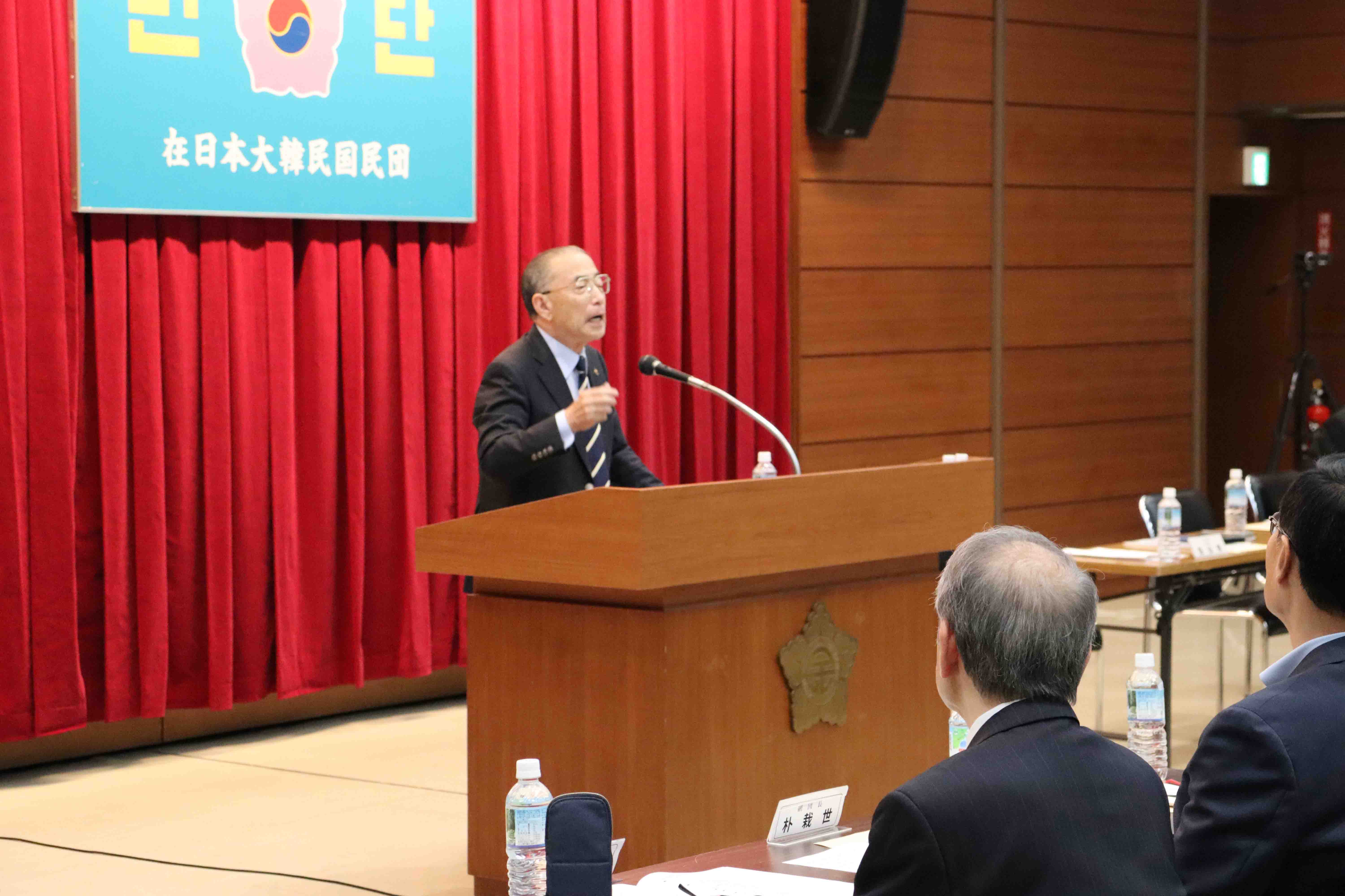 研修会冒頭であいさつする呉永錫団長