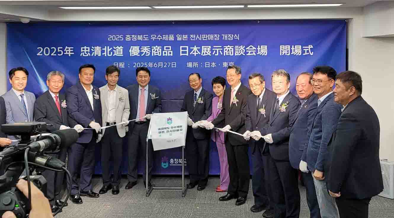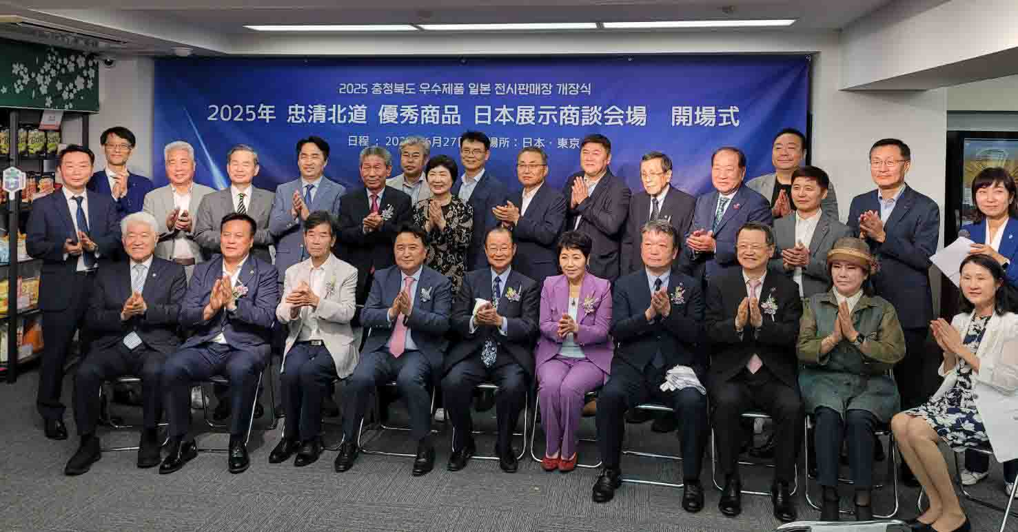 2025年6月27日(金)16時東京都文京区にあるSUNビルにおいて「忠清北道 優秀商品 日本展示商談会場 開場式」が行われ韓日各級組織・各団体の代表者約50名が参加した。
