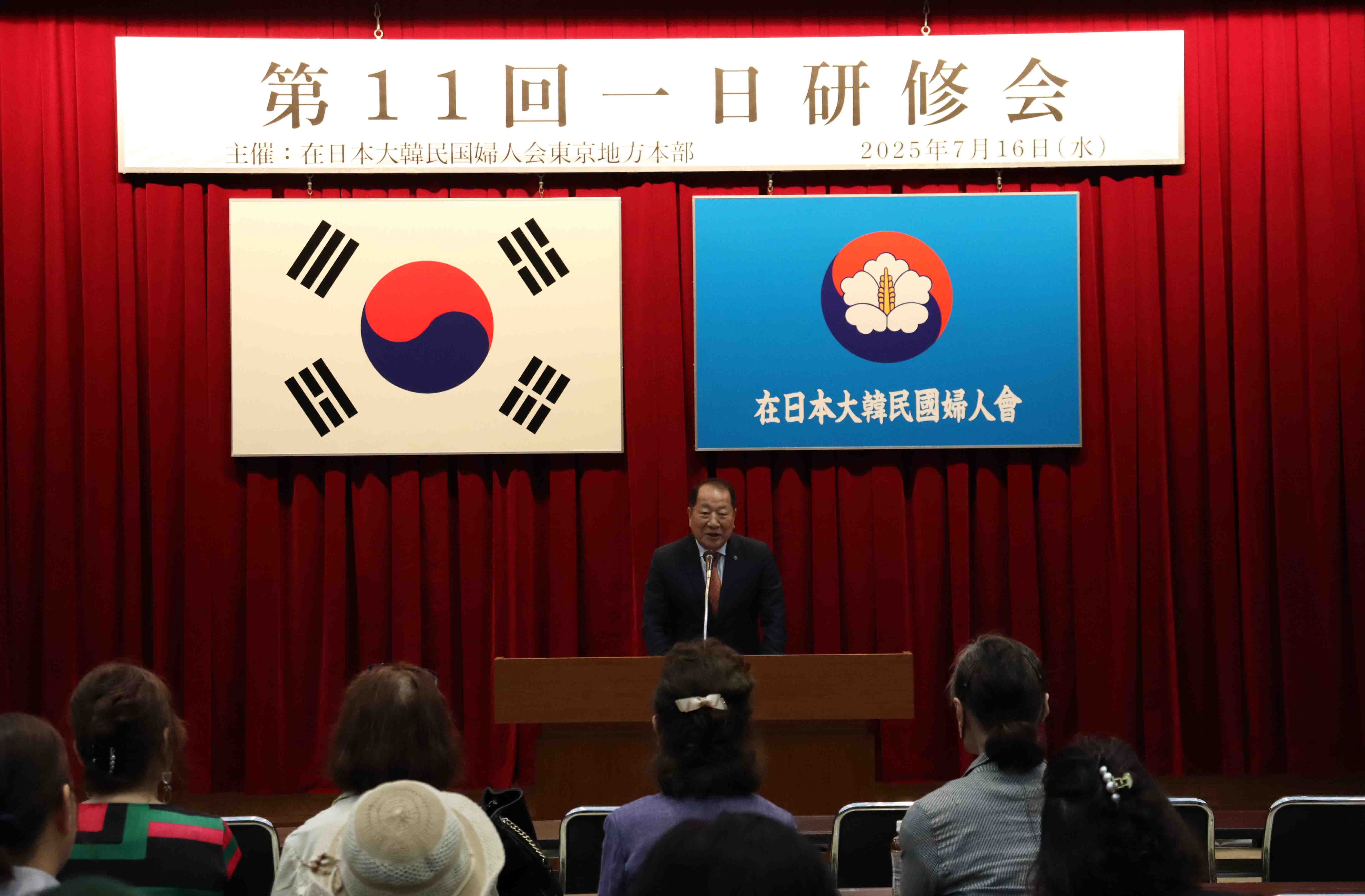 婦人会東京本部(辺恵聖会長)は、「一日研修会」を7月16日(水)13時半、中央会館8階大ホールにおいて開催。会場には、東京管下15支部の婦人会会員ら82名が参加した。また、来賓として婦人会中央本部の劉代永会長、民団東京本部の呉永錫団長、朴昭男議長、張界満監察委員長、公館からは駐日韓国大使館の金延珍領事課長などの来賓が多数参加し、同研修会を祝った。