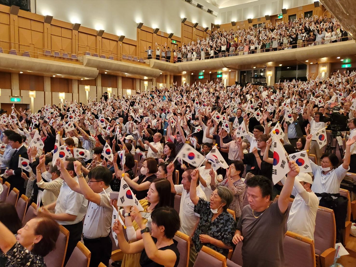 8月15日、第80周年光復節中央記念式典(主催:民団中央本部、主管:民団東京本部、後援:在外同胞庁)が東京・江東区の「江東公会堂(ティアラこうとう)」に都内の団員ら約1600名が参加して開催された。