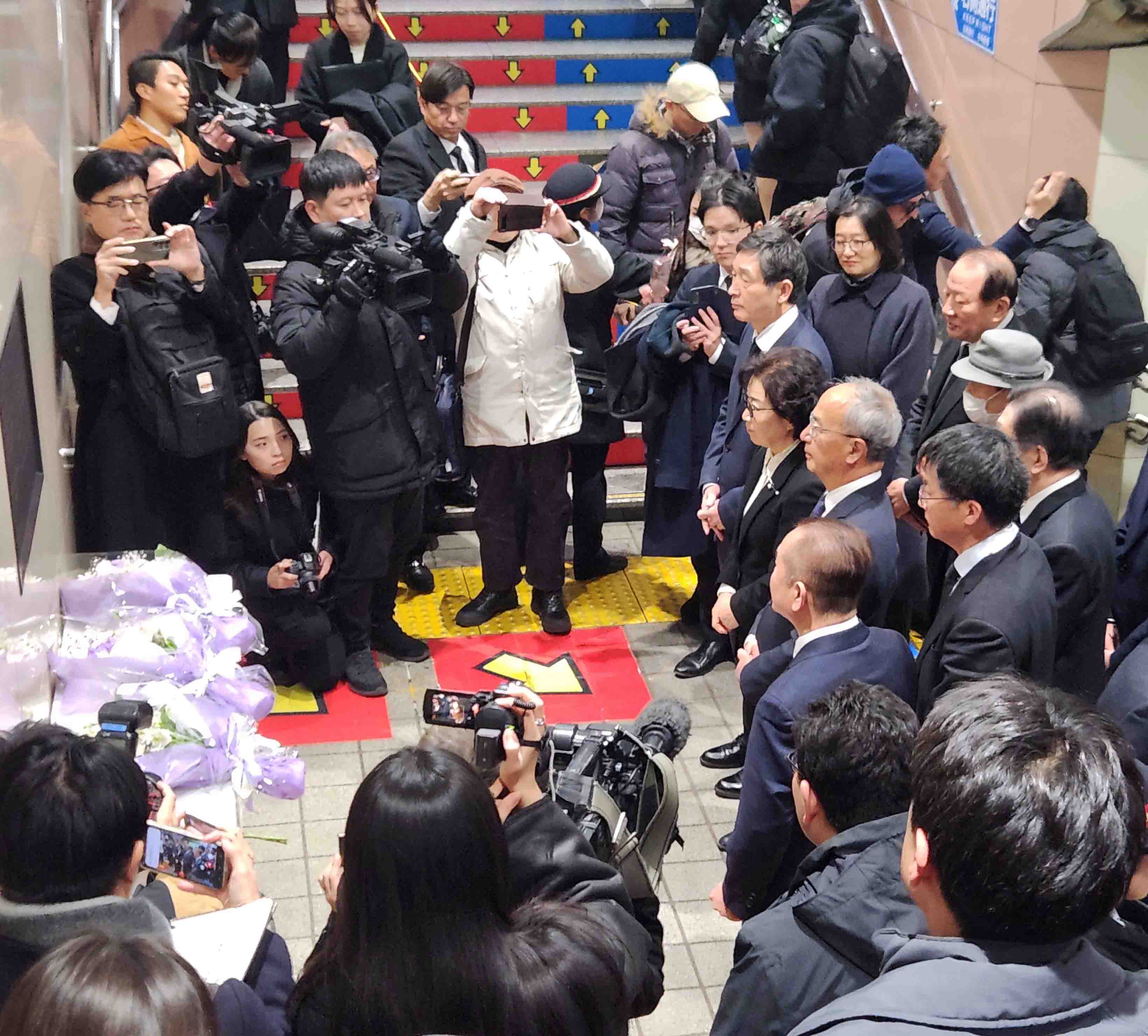 新大久保駅での献花のようす