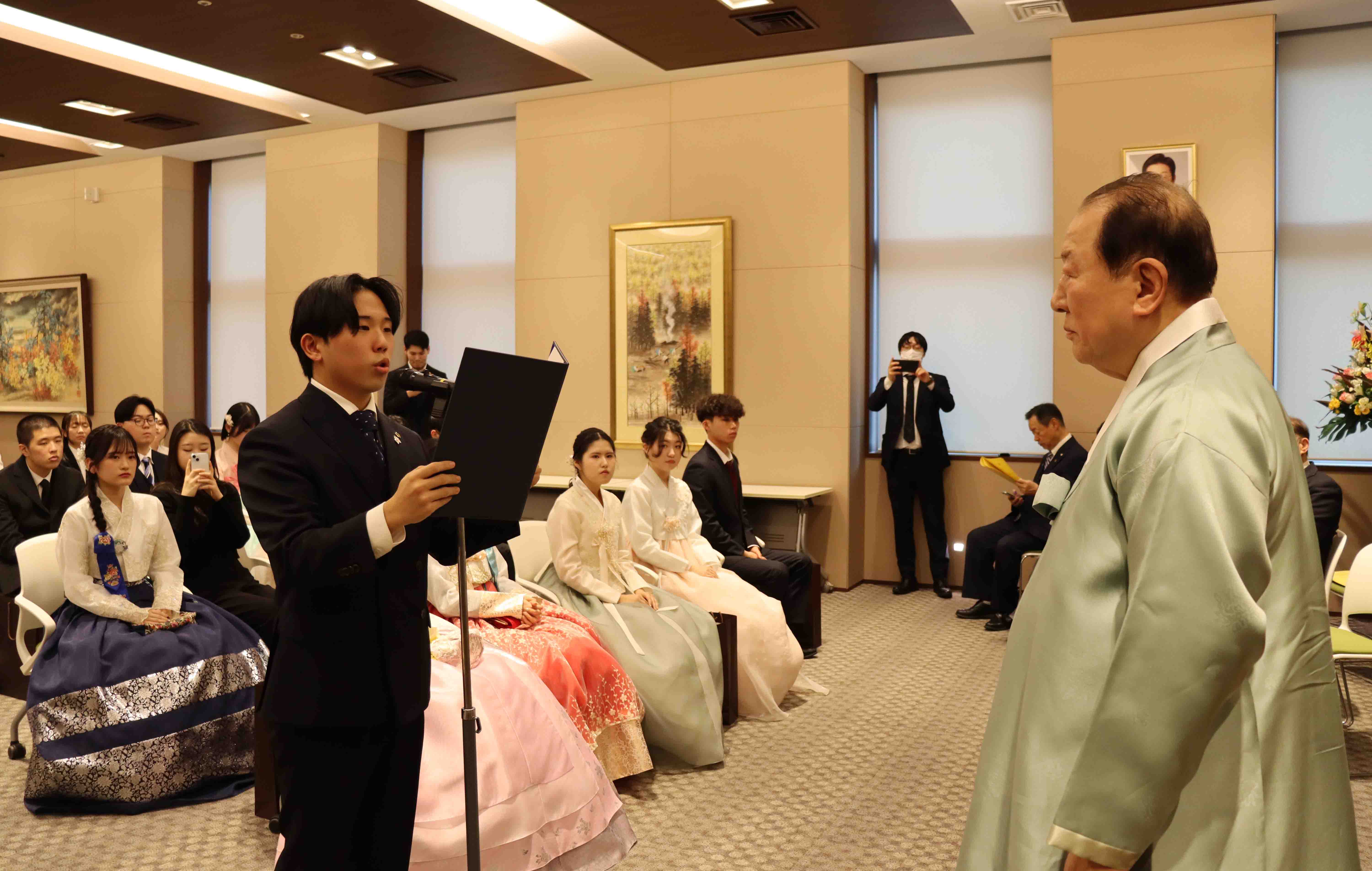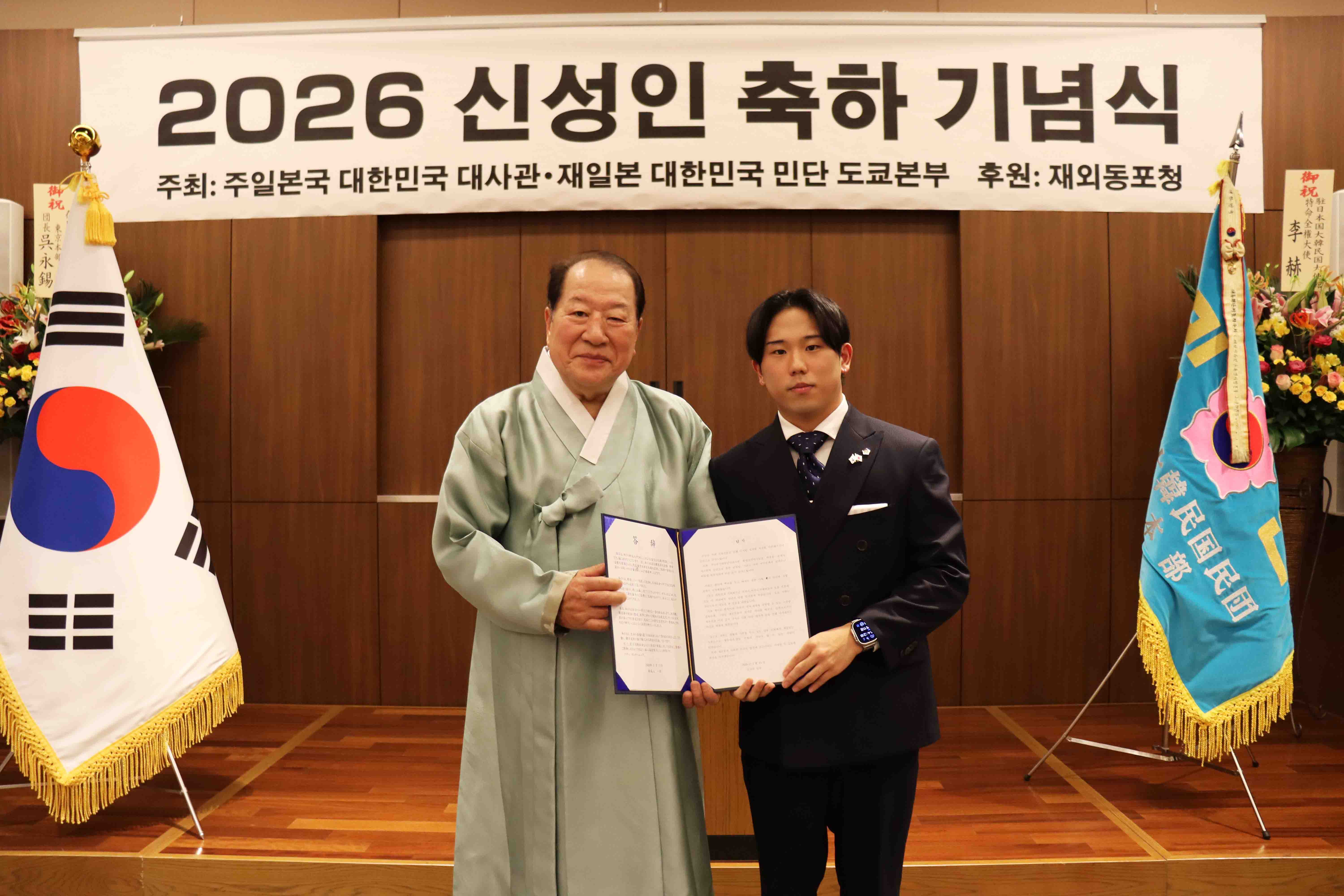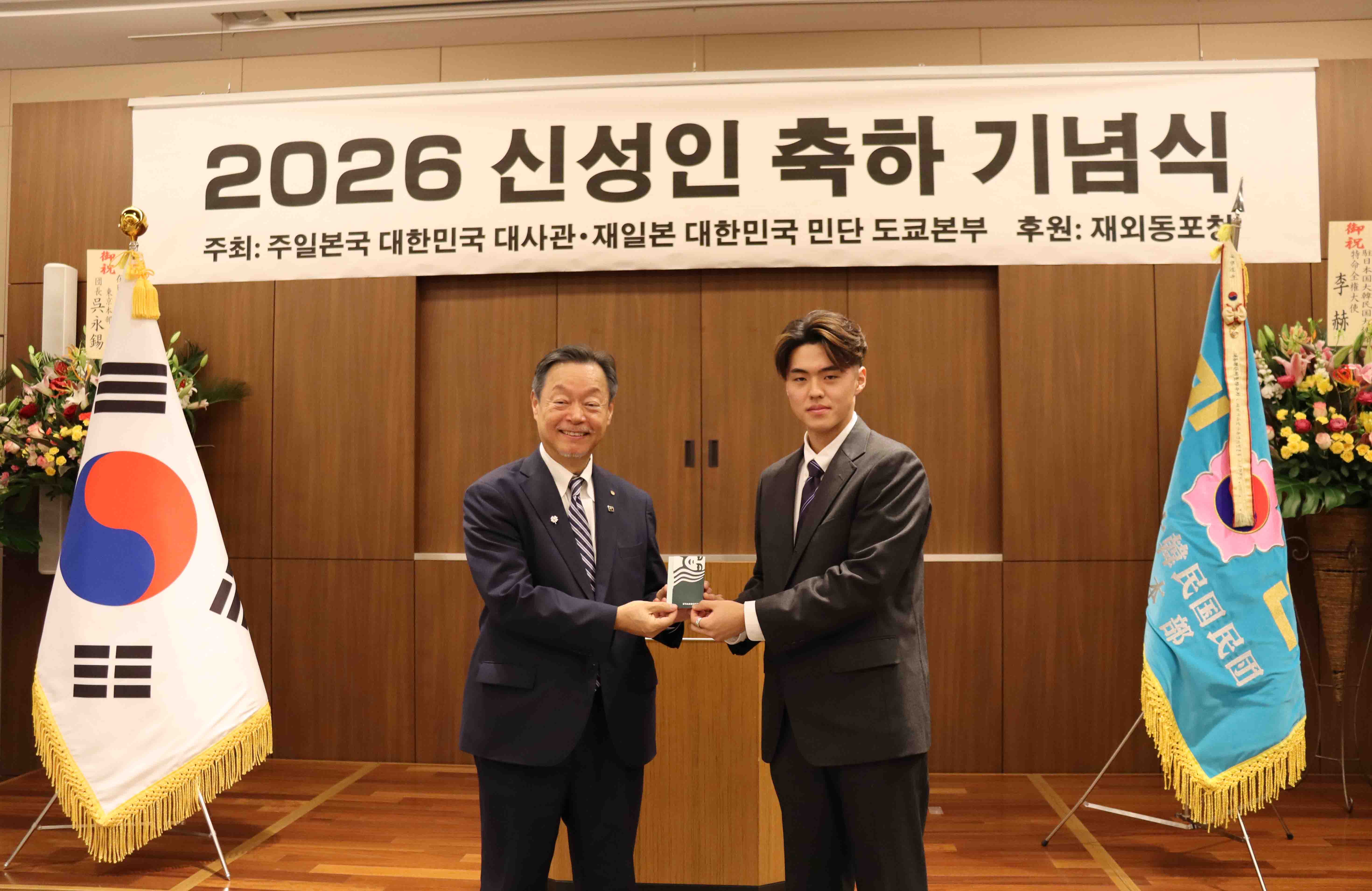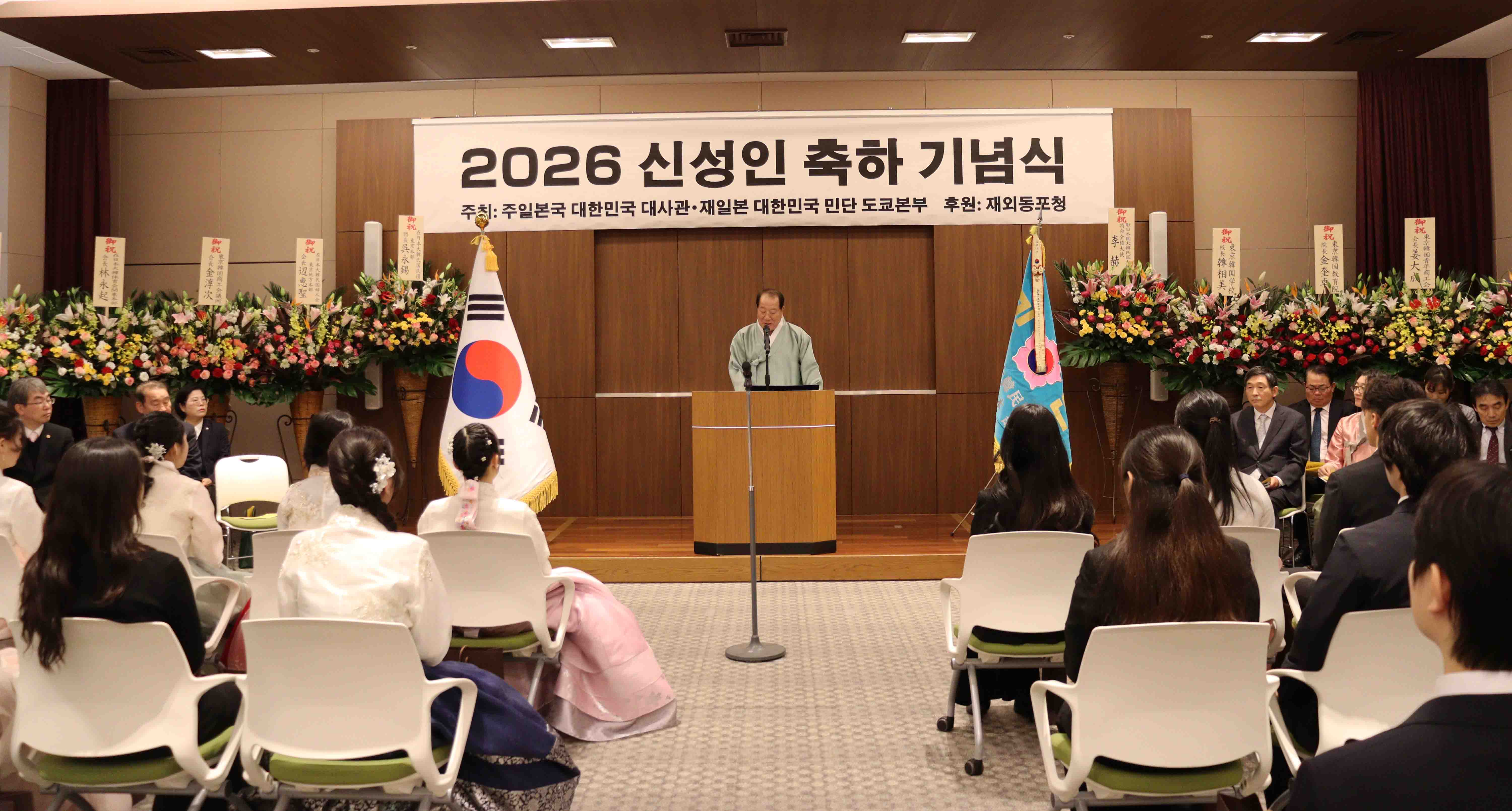 民団東京本部(呉永錫団長)は駐日韓国大使館と共催で「2026 在日韓国人 成人式」を開催、新成人37名を含む130名が参加し新成人の門出を祝った。