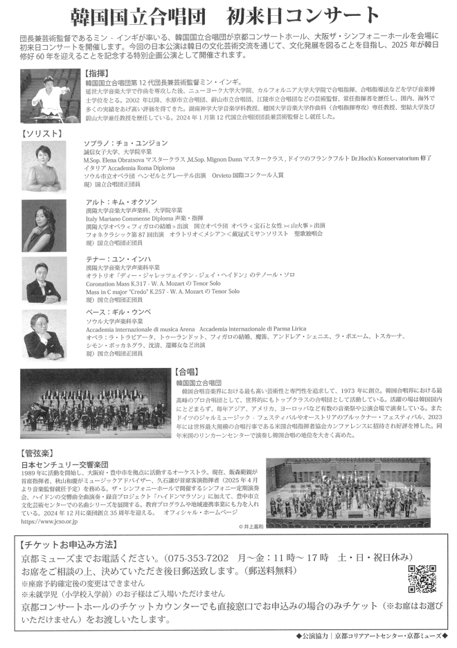韓国国立合唱団初来日コンサート【2025韓日修好60周年記念音楽会】10/29開催 2024/09/18
